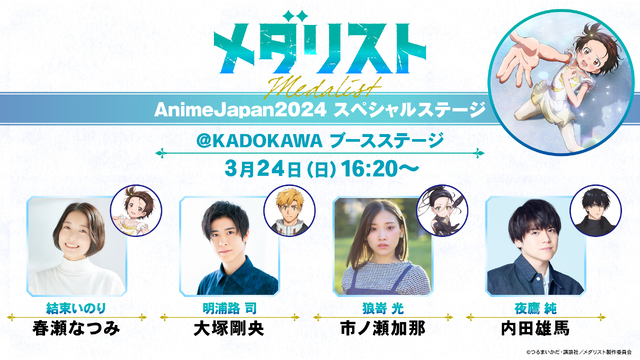 It has been decided that Medalist'', which has been announced to be made into a TV anime, will be broadcast on theNUMAnimation” slot of TV Asahi’s 24 stations nationwide from January 2025. In addition, the first PV, new characters and new cast information has been released. It has also been decided that new cast members will appear on the special stage at “AnimeJapan 2024”.